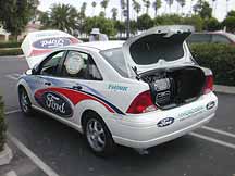 The 2002 Ford Focus FCV is a no frills small car that achieved 92 bhp and had a range of around 100 miles. The Ford Focus FCV used a Ballard Mark 902 fuel cell and a compressed hydrogen tank at 3,600 psi. |