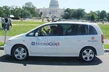 The 2002 GM HydroGen3 was announced on December 2 as a joint program between General Motors and Federal Express to test the first commercial fuel cell vehicle in Japan. The GM HydroGen3 has a top speed of 100 mph and a range of 250 miles. |