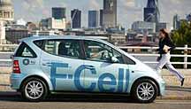 The 2002 DaimlerChrysler Mercedes A-Class F-Cell was first presented to the public in October of that year. The DaimlerChrysler Mercedes A-Class F-Cell features a Ballard Mark 902 85 kw fuel cell and was one of the smallest hydrogen cars at that time. |