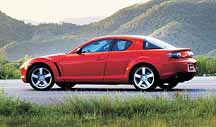 The 2003 Mazda RX-8 Renesis (RE) is a dual-fuel rotary engine vehicle able to use both gasoline or hydrogen at the flip of a switch. The rotary engine in the Mazda RX-8 Renesis is not prone to misfiring or backfiring as are most standard internal combustion engines. |
