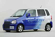 The 2003 Suzuki WagonR FCV has a 35 MPa storage rating for its two compressed hydrogen tanks. The 2003 Suzuki WagonR FCV contains a 50 kw fuel cell developed by General Motors and was first shown at the 2003 Tokyo Motor Show. |