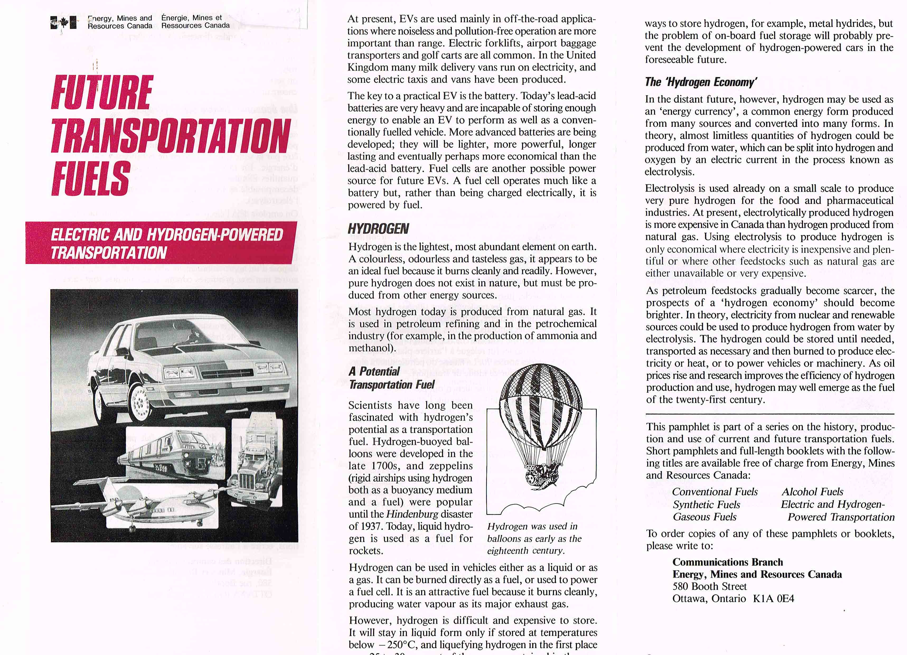 At the 1986 Canadian International Auto Show in Toronto, I picked up the pamphlet depicted below, and for thirty years, I have followed hydrogen related news from every available source at every opportunity. It also got me interested in its history.