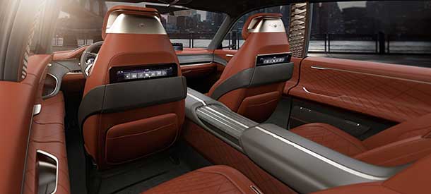 Under the hood is a showcase of impressive technology. The Genesis team made use of a hydrogen fuel cell with batteries that combine to make this a fuel cell plug-in vehicle. This will make using electric-only propulsion possible for driving short distances prior to switching to the fuel cell. Consequently, driving long distances, can be achieved using both zero emissions electricity sources. And, the plug-in will allow battery recharging from home.