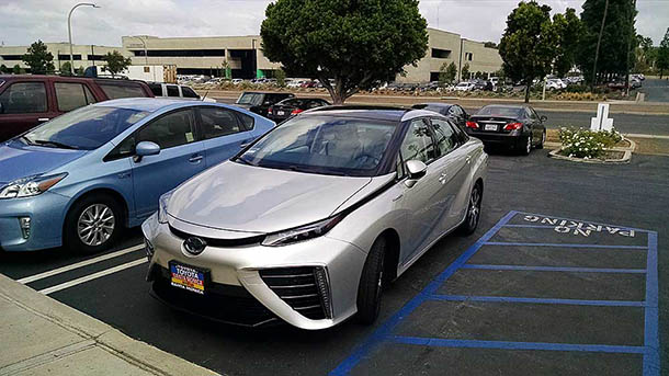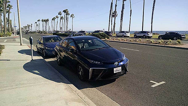 Fast forward to today. Over the past few of weeks, I’ve spotted a couple of different commercial Toyota Mirai fuel cell vehicles, out and about in two different locations in Southern California (Huntington Beach and Brea, CA respectively – pictured below).
